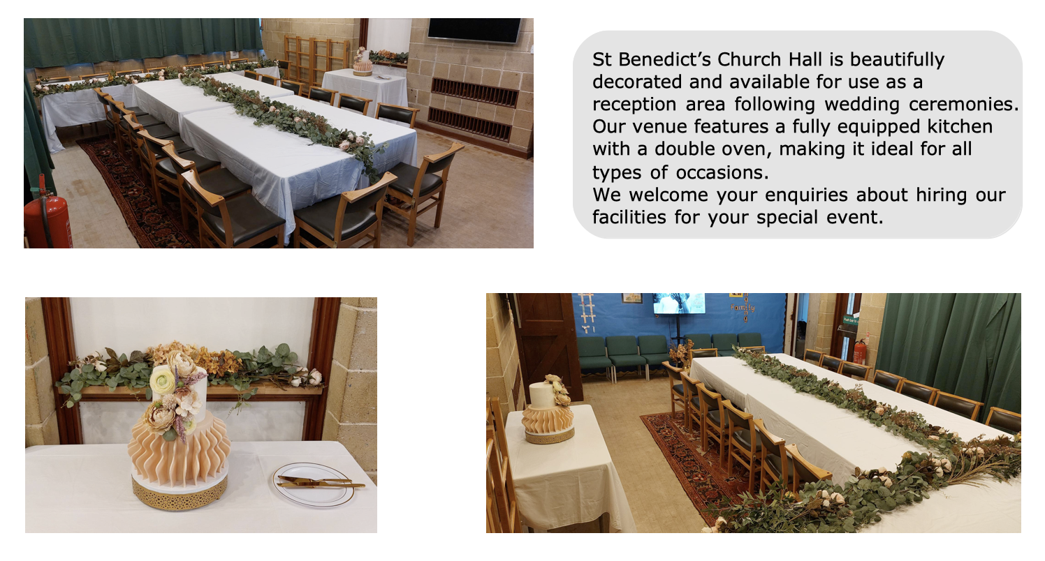 We have a room that can be booked for many activities; birthdays, anniversaries, social clubs etc. See our bookings Hirers' agreement for more specific details. We have a kitchen, outside play area, unisex toilets, a disabled toilet and nappy changing facilities. We have a small carpark, though additional parking can be found across the road at the country park. Please contact us at admin@stbens.uk for more information and to make a booking.